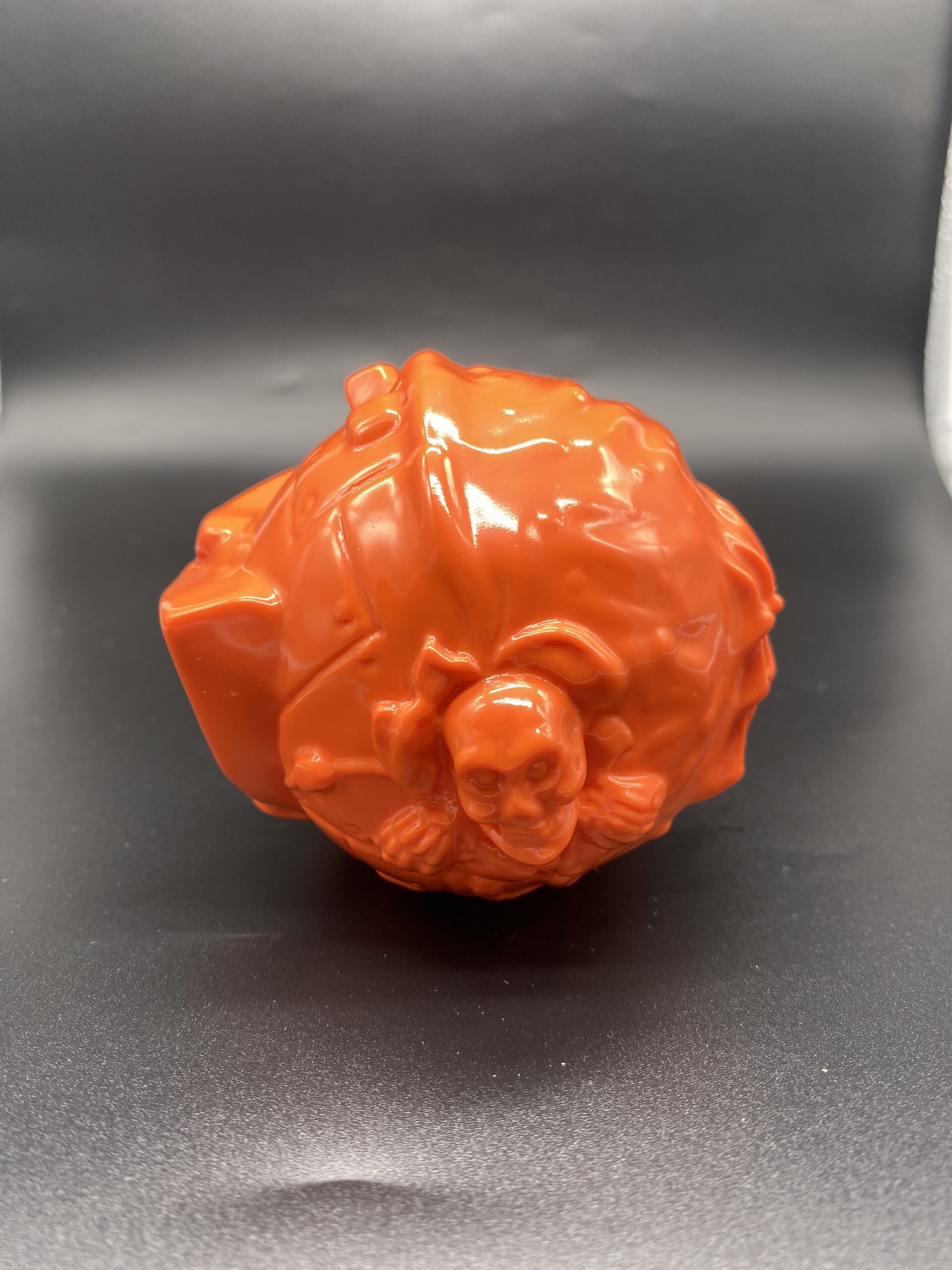 Mechacreatch Madball Orange Blank Vinyl Sofubi. About 3”. – 6” around.